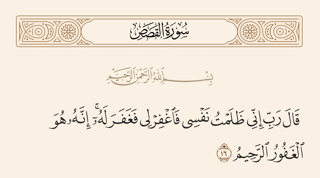 قال تعالى: «قَالَ رَبِّ إِنِّي ظَلَمْتُ نَفْسِي فَاغْفِرْ لِي فَغَفَرَ لَهُ إِنَّهُ هُوَ الْغَفُورُ الرَّحِيمُ».