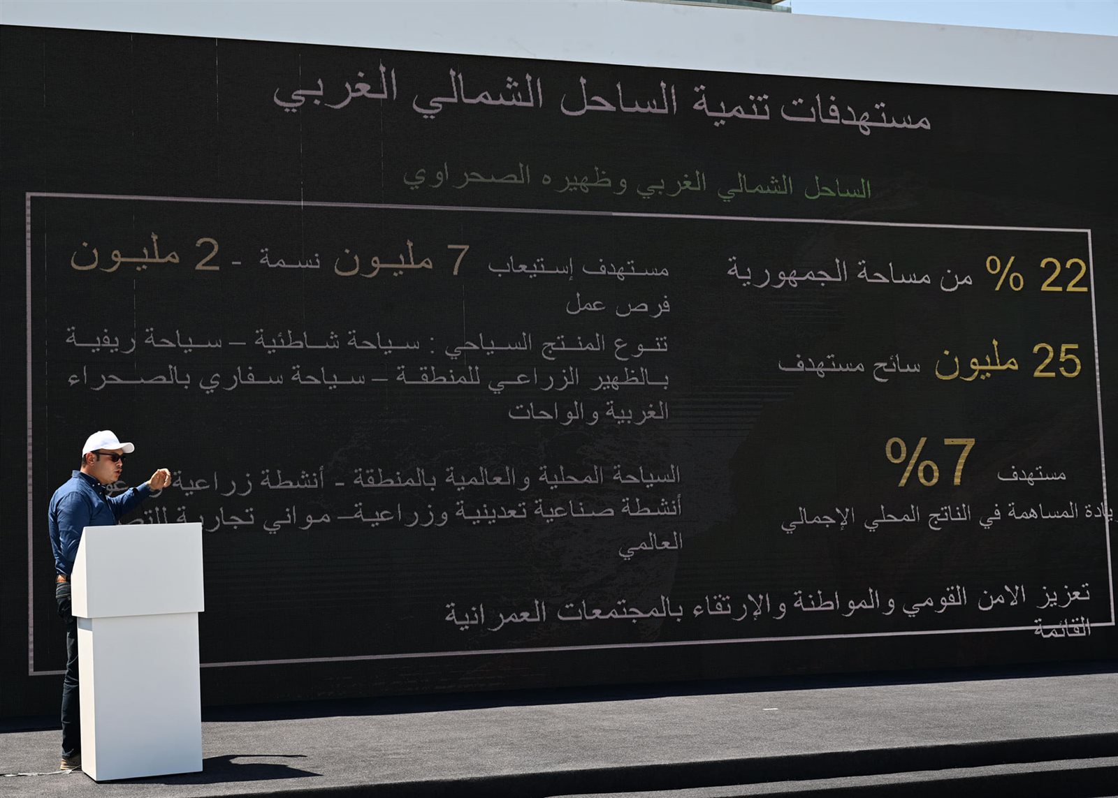 وخلال احتفالية تم تسليم المرحلة الأولى من الوحدات السكنية والشاليهات بمدينة "العلمين الجديدة"، قدم المهندس شريف الشربيني، وزير الإسكان والمرافق والمجتمعات العمرانية، عرضًا بدأ بتناول الرؤية التنموية للساحل الشمالي الغربي، والتي تستهدف وضعه على خريطة الاستثمار العالمية، وتحويله من ساحل موسمي النشاط أثناء شهور الصيف فقط، ليصبح مركزًا تنمويًا رئيسيًا متعدد الأنشطة الاقتصادية السياحية، أو الصناعية، أو الخدمية، على مدار العام، وذلك بما يسهم فى تحقيق نحو 7% كزيادة مساهمة فى الناتج المحلي الإجمالي.