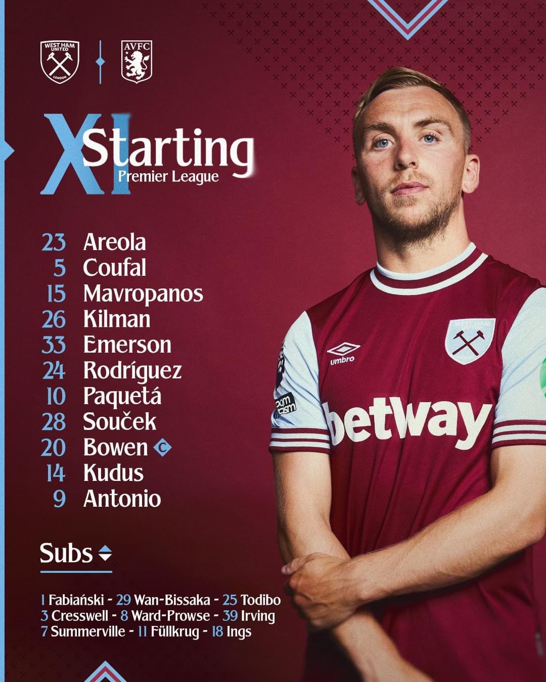 تشكيل وست هام يونايتد أمام أستون فيلا
