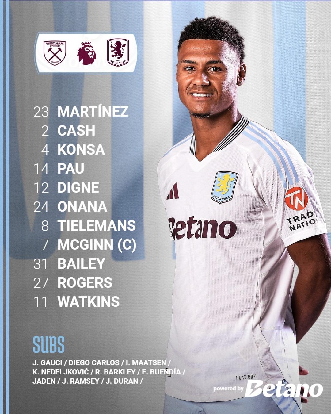 فاز فريق أستون فيلا علي منافسه وست هام يونايتد بنتيجة 2ـ1، في المباراة التي تقام بينهما اليوم السبت على ملعب لندن الأولمبي، ضمن منافسات الجولة الأولي لمسابقة الدوري الإنجليزي موسم 2024-2025.