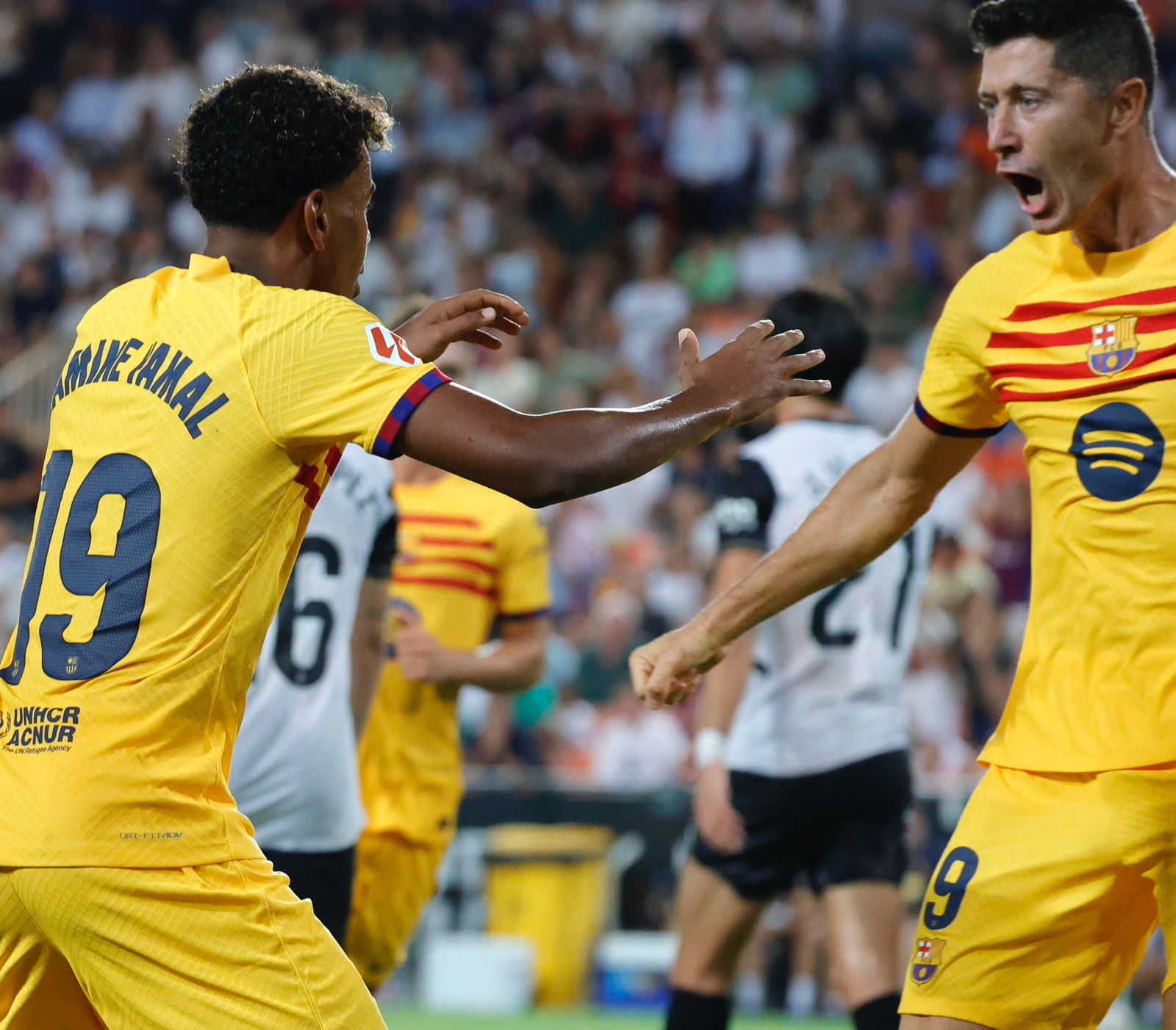 وسجل هوجو دورو هدف فريق فالنسيا الأول في الدقيقة 44 من عمر الشوط الأول، وأحرز ليفاندوفسكي الهدف الأول والثاني لبرشلونة في الدقيقة 6+45 والدقيقة 49.