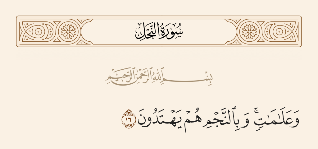 قال تعالى: «وَعَلَامَاتٍ وَبِالنَّجْمِ هُمْ يَهْتَدُونَ».
