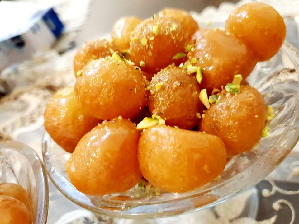 وتحمر فى زيت غزير ساخن وبعد التحمير تصفى وتوضع بالشربات الثقيل البارد وتصفى وتقدم.