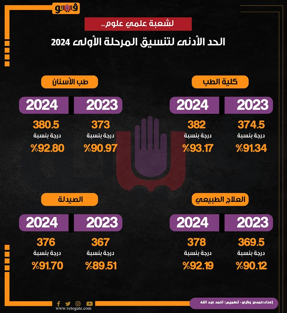 وجاء الحد الأدنى للقبول بكليات ومعاهد المجموعة العلمية لعام 2024
