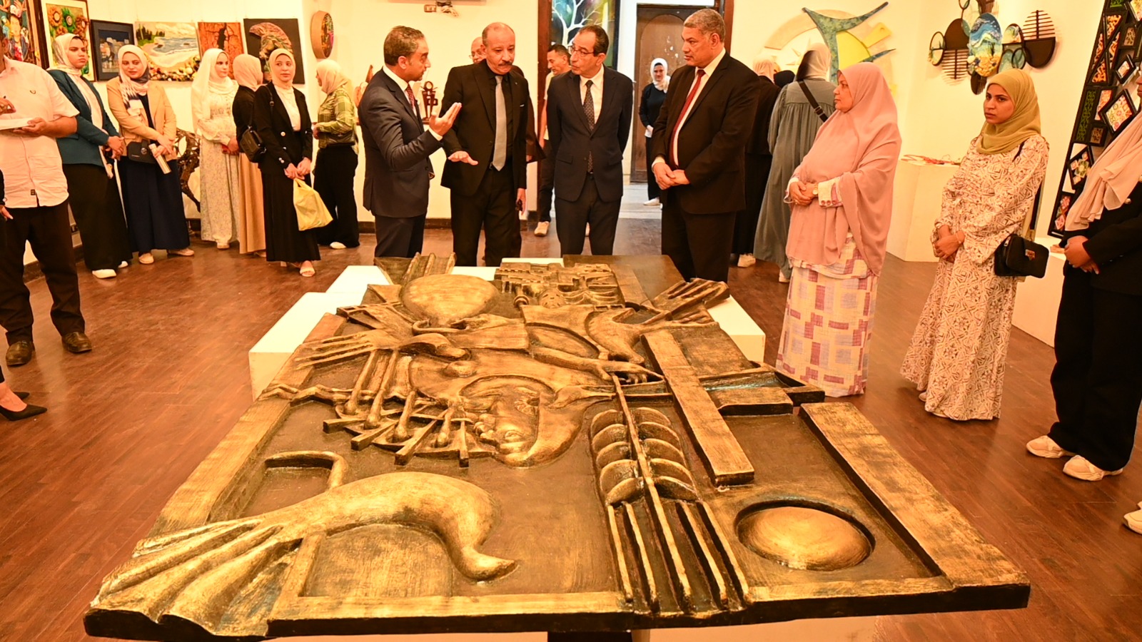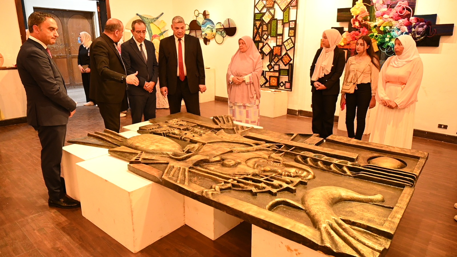 رئيس جامعة الفيوم يفتتح المعرض الفني لإعادة تدوير الخامات