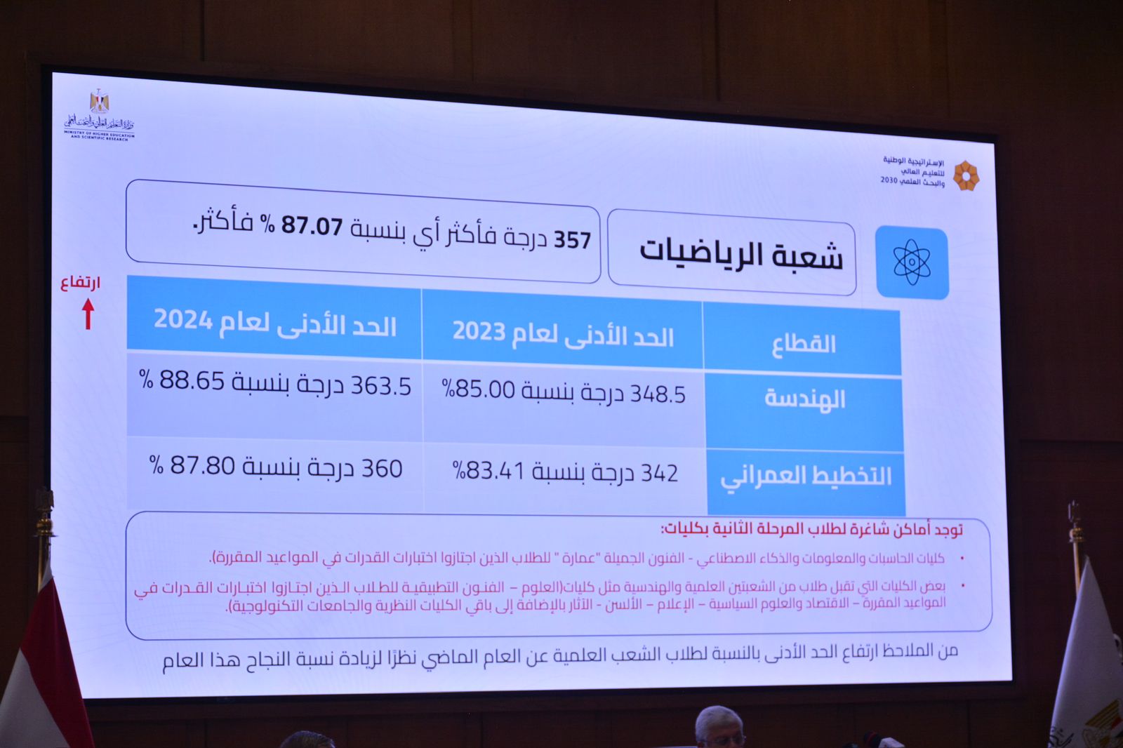 وكان قد تم إعلان نتيجة المرحلة الأولى على موقع التنسيق الإلكتروني بعد انتهاء المؤتمر الصحفي للوزير، ويمكن للطلاب الدخول إلى الموقع برقم الجلوس والرقم السري الخاص بهم للاطلاع على نتائجهم.