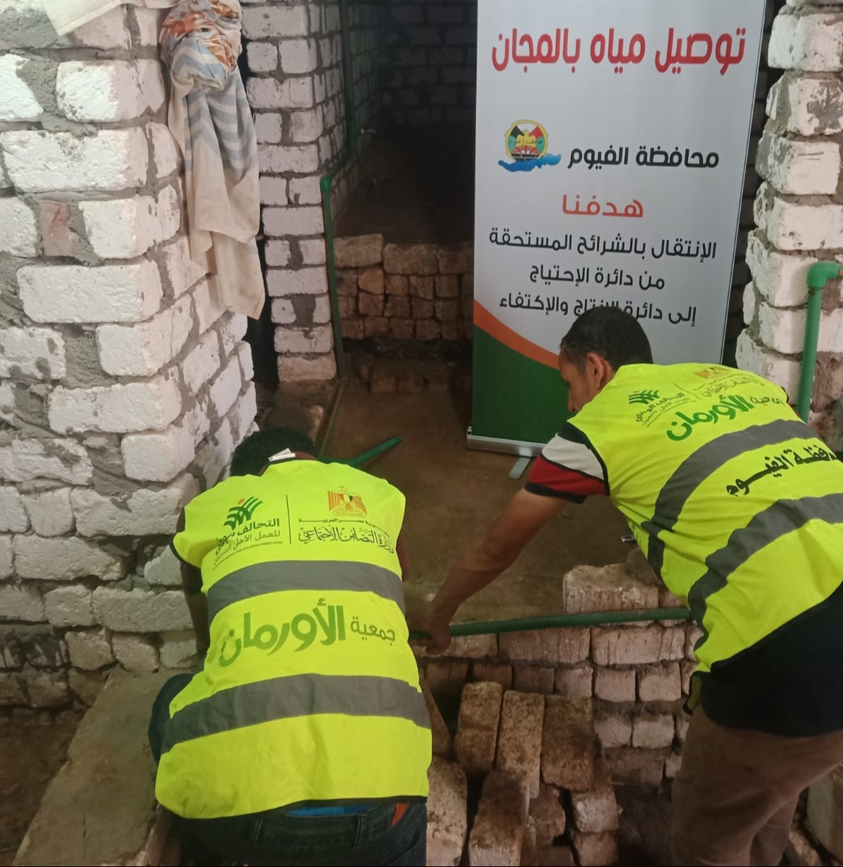 وقال وكيل وزارة التضامن بمحافظة الفيوم جبريل عبد الوهاب، إن الهدف من تركيب وصلات مياه شرب، للأسر غير القادرة، هو توفر حياة كريمة تضمن لهم المعيشة في مسكن مناسب تتوافر فيه المستلزمات الضرورية للحياة.