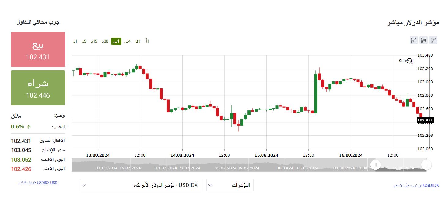 مؤشر الدولار، سعى مؤشر العملة الخضراء للتعافي والصعود لمستويات جديدة خلال حركة التداولات العالمية، ولكنه مازال يعانى من بيانات التضخم الأمريكية، ليلامس مستوى 102.44 نقطة بحركات البيع والشراء .