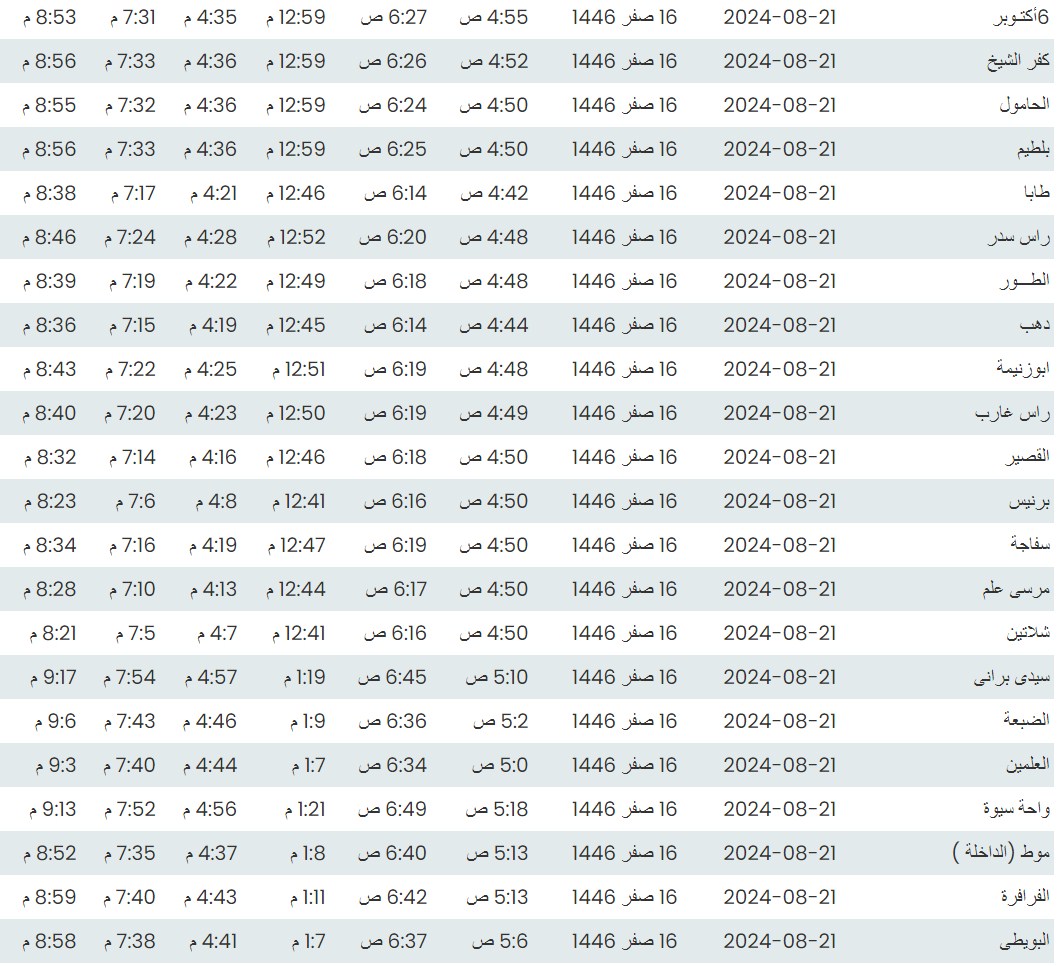 وفيما يلي مواقيت الصلاة، لعدد من مدن ومحافظات الجمهورية من واقع بيانات الهيئة العامة للمساحة