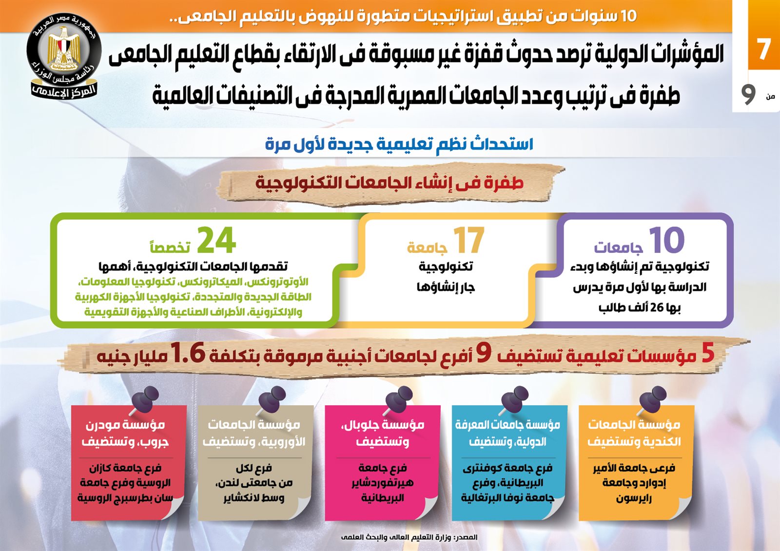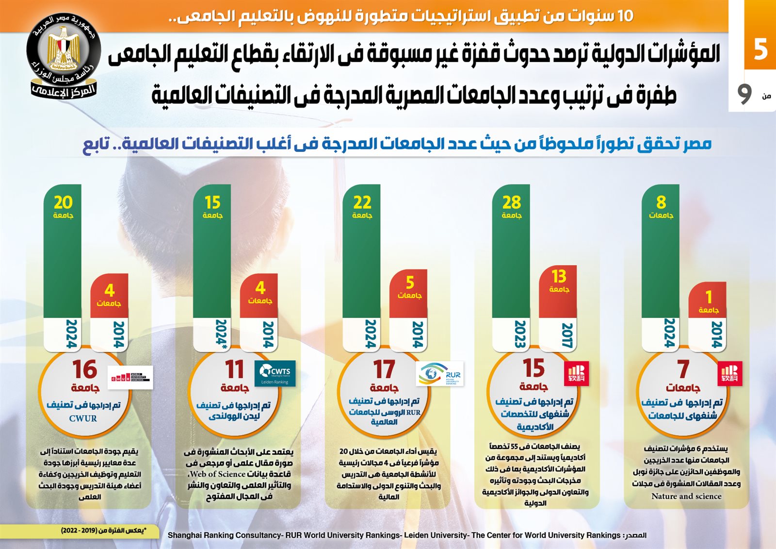 التعليم العالي في 10 سنوات، قفزة في ترتيب وعدد الجامعات بالتصنيفات العالمية (انفوجراف)