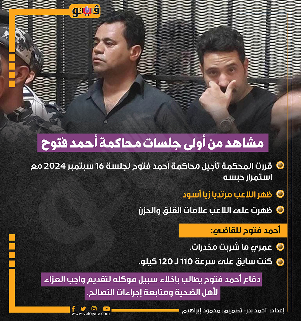 مشاهد من أولى جلسات محاكمة أحمد فتوح (إنفوجراف) الإثنين 19/أغسطس/2024 - 04:53 م 8/19/2024 4:53:33 PM احمد فتوح، فيتو أحمد بدر شارك طباعة 18 حجم الخط شارك طباعة محكمة جنايات مطروح احمد فتوح نادي الزمالك