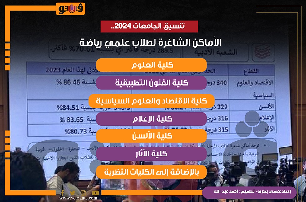 أماكن شاغرة بالكليات والمعاهد للشعب العلمية:
