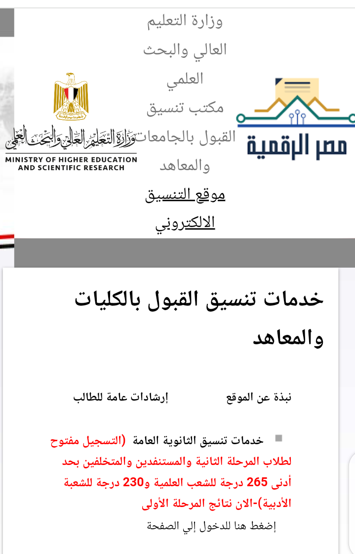 تنسيق الجامعات 2024، بدأ موقع تنسيق الجامعات في تلقي تسجيل الرغبات لطلاب المرحلة الثانية لتنسيق الجامعات الحكومية والمعاهد عبر موقع التنسيق الإلكتروني وذلك من اليوم حتى يوم السبت الموافق 24 أغسطس ولمدة 5 أيام.