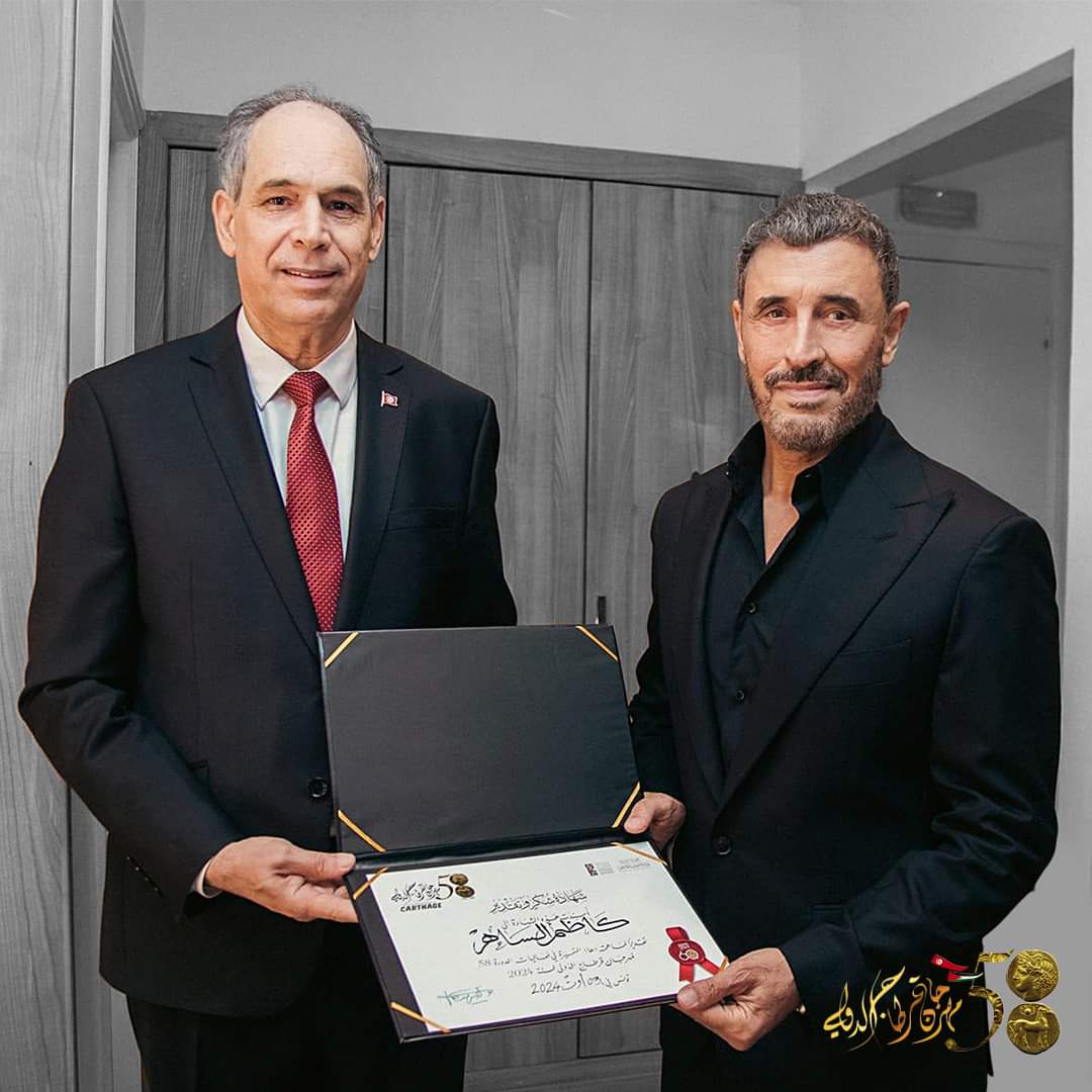 وشارك "الساهر" جمهوره ومحبيه بلقطات من التكريم وأرفقها بتعليق: بعد أمسية لا تنسى بين الأحبة في قرطاج، سعدت وتشرّفت بالتكريم الذي أسبغه علي في قرطاج الوزير منصف بوكثير الوزير المكلف بتسيير وزارة الشؤون الثقافية في تونس.