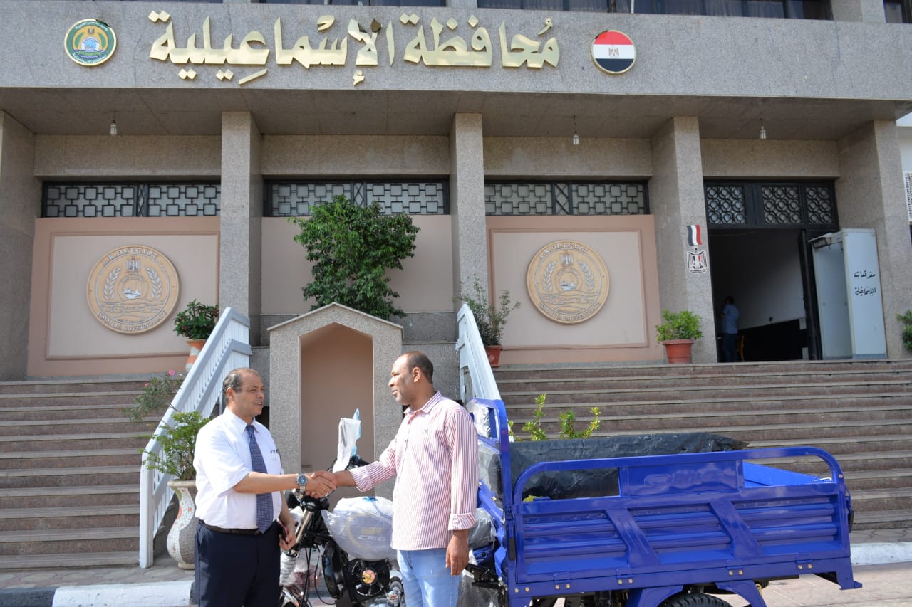 لتأمين دخل مناسب لأسرته، محافظ الإسماعيلية يسلم مواطنا "تروسيكل"