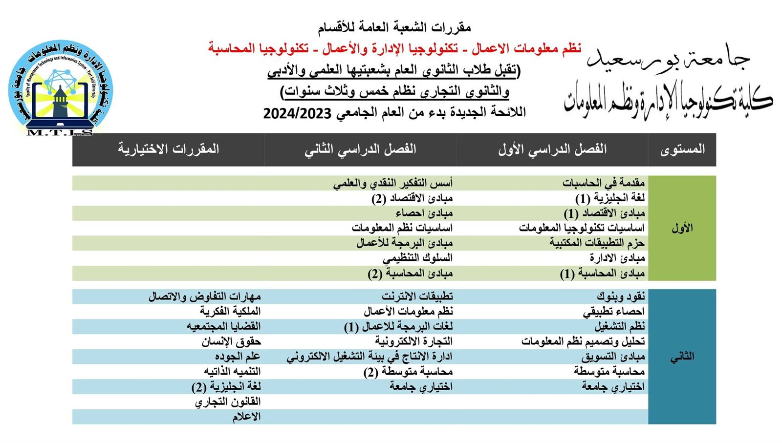 نظم وتكنولوجيا المعلومات: يركز هذا التخصص على تصميم وتطوير وتشغيل أنظمة المعلومات.