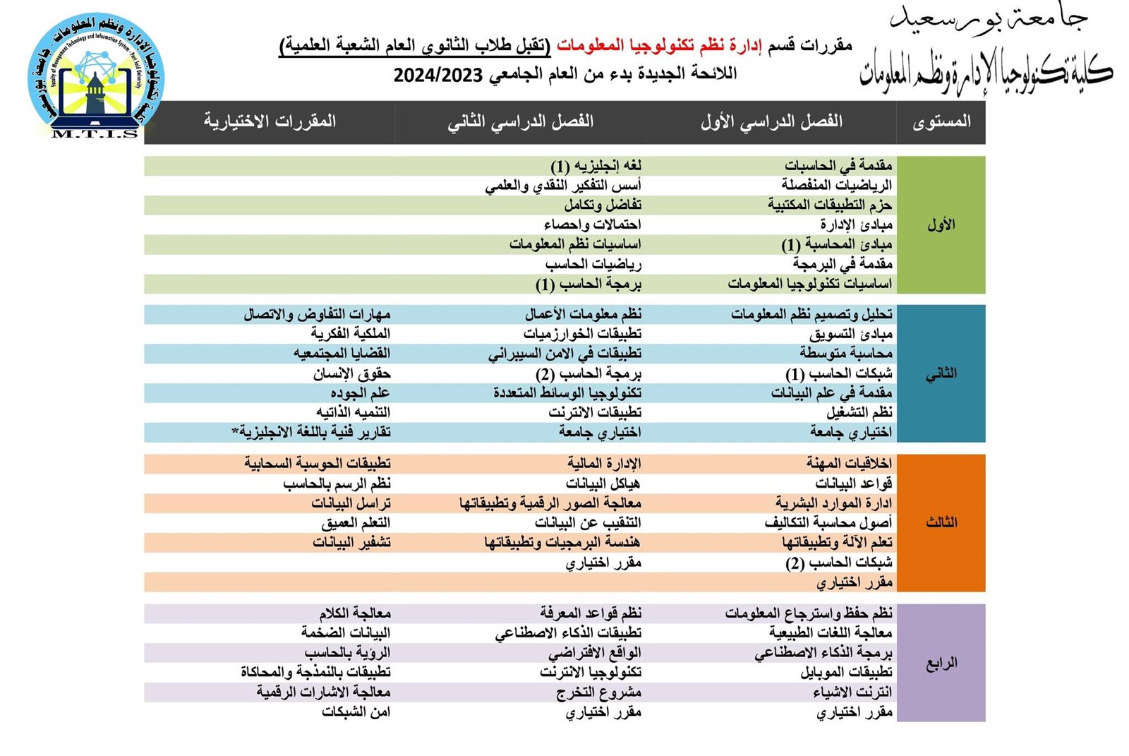 وتقبل كلية الإدارة ونظم المعلومات جامعة بورسعيد، الطلاب كذلك من الحاصلين على شهادة الثانوية الفنية الصناعية نظام ثلاث سنوات فقط تخصص حاسب آلي.