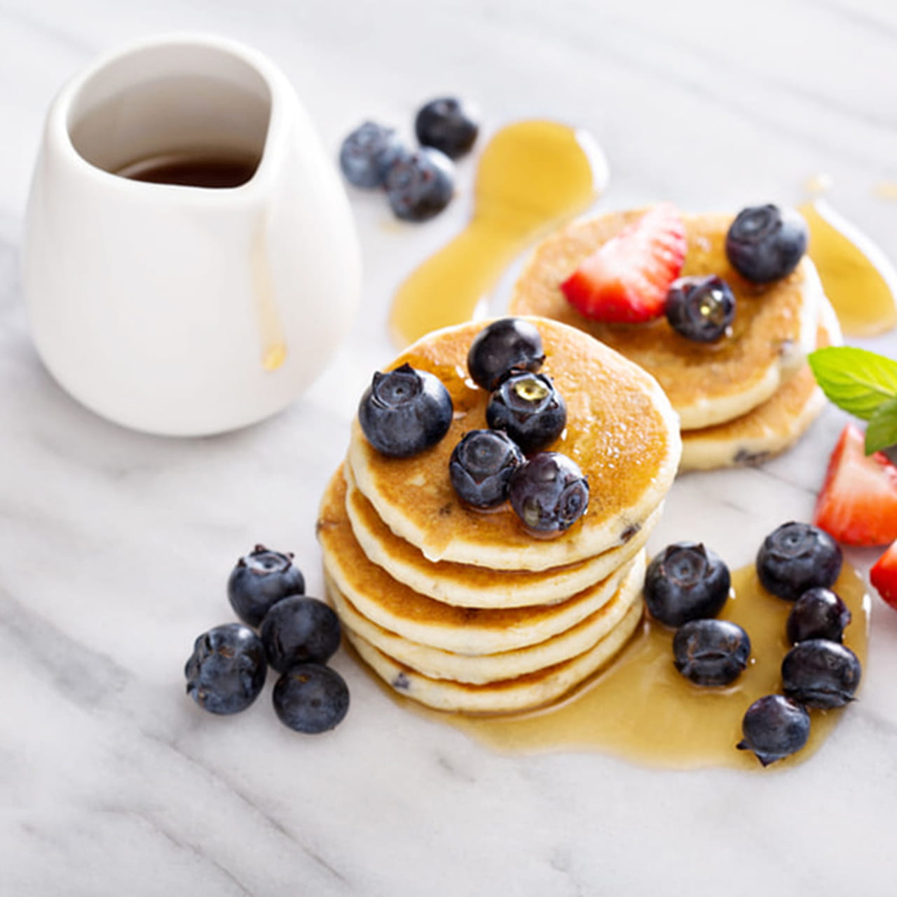قدمي البان كيك مع المربى أو العسل أو الفواكه.
