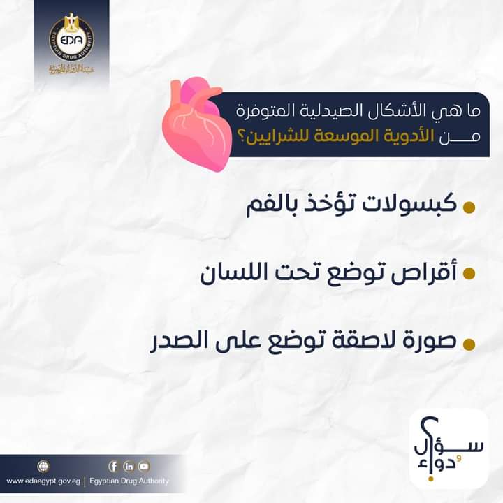 وأكدت هيئة الدواء المصرية في منشور توعوي لها أنه في حالة نسيان جرعة من الأقراص الموسعة للشرايين التي تعطى بالفم أو اللاصقة تنصح هيئة الدواء المصرية باتباع ما يلي: