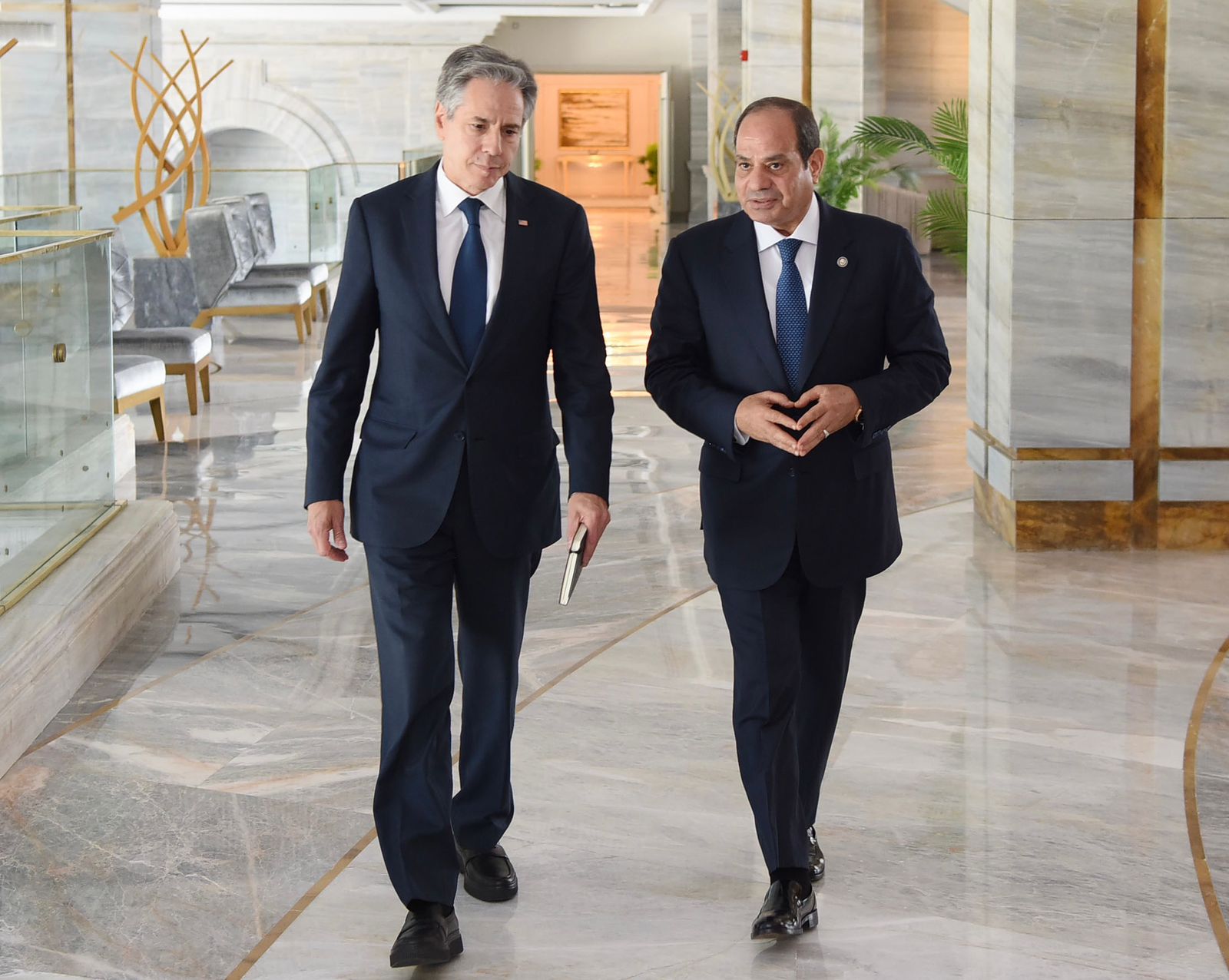 استقبل الرئيس عبد الفتاح السيسي، اليوم، وزير الخارجية الأمريكي "أنتوني بلينكن"، والوفد المرافق له، وذلك بحضور الدكتور بدر عبد العاطي وزير الخارجية، واللواء عباس كامل رئيس المخابرات العامة، بالإضافة إلى السفيرة "هيرو مصطفى جارِج" سفيرة الولايات المتحدة الأمريكية في القاهرة.