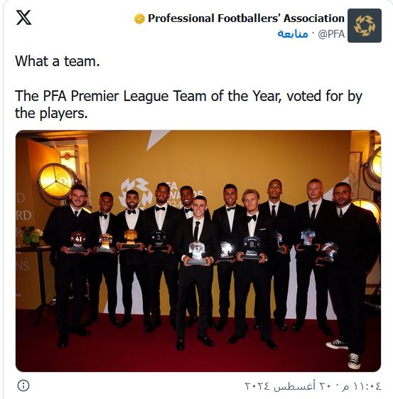أعلنت رابطة اللاعبين المحترفين أمس الثلاثاء عن التشكيل المثالي لموسم 2023-2024 في الدوري الإنجليزي الممتاز.