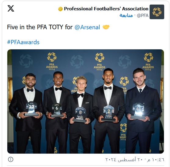 فيما غاب عن التشكيلة المثالية للموسم الماضي كول بالمر، نجم تشيلسي، رغم تتويجه من نفس الرابطة بجائزة أفضل لاعب شاب.