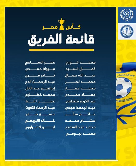 قائمة الإسماعيلي لمواجهة سموحة في كأس مصر