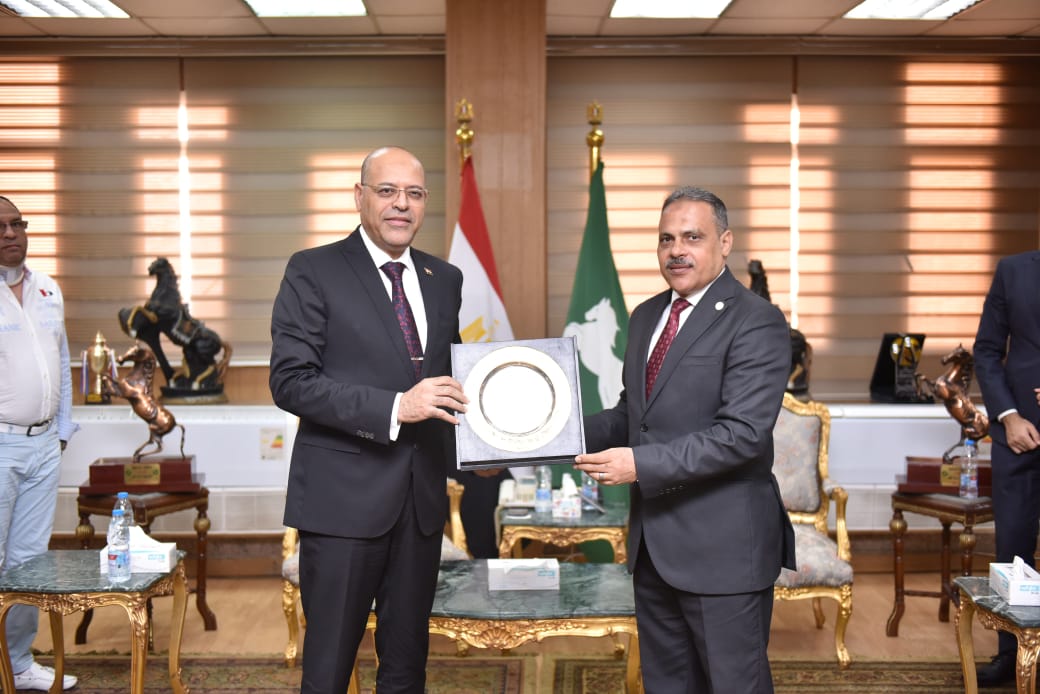 وفي نهاية اللقاء سَلّم محافظ الشرقية "درع المحافظة" لوزير العمل..