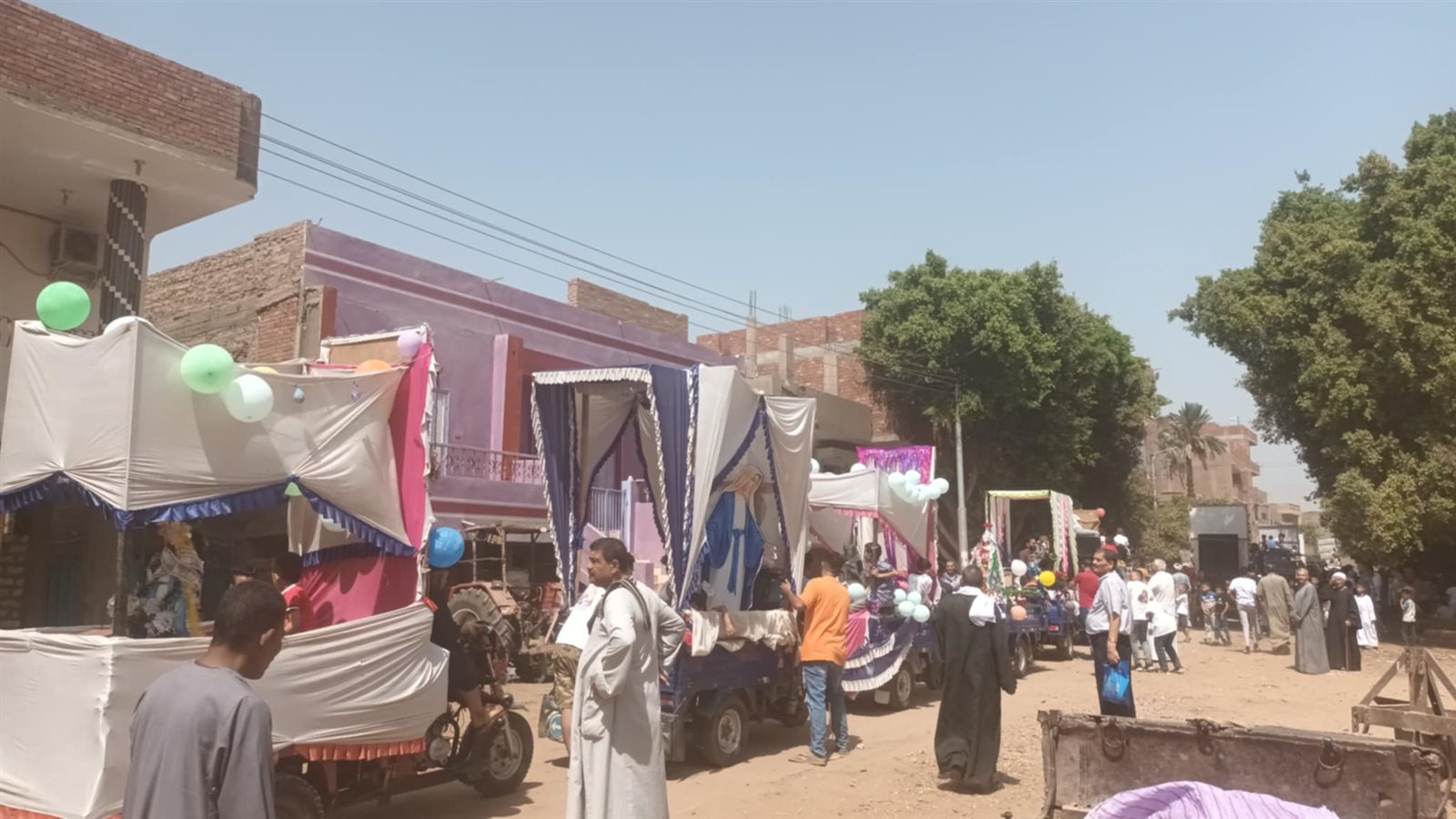 وانطلق موكب الاحتفال من كنيسة السيدة العذراء مريم وجاب شوارع القرية من أجل الاحتفال بتلك المناسبة.