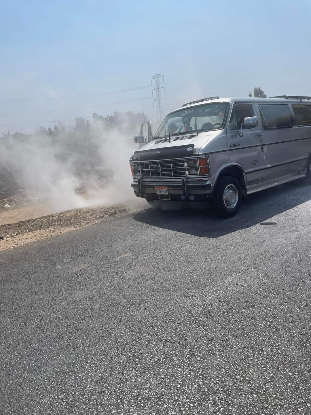 اشتعال النيران في ميكروباص على طريق طنطا - الإسكندرية