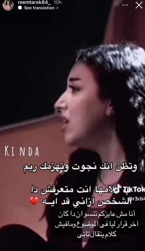 في هذا السياق، كتبت ريم طارق منشورًا عبر خاصية استوري عبر حسابها الشخصي بموقع إنستجرام قائلة: “أنا مش عايزاكم تنسوا إن الطلاق كان آخر قرار ليّا في الموضوع ومفيش كلام يتقال تاني”.