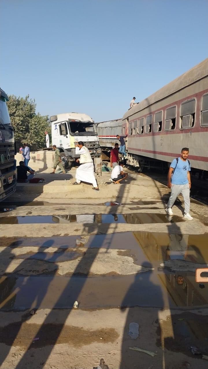 وتبين تصادم بين قطار بضائع وعدد من سيارات النقل والملاكي؛ ما أدى لسقوط إصابات بين المواطنين، وتحرر محضر بالواقعة وأخطرت النيابة لتتولى التحقيق.
