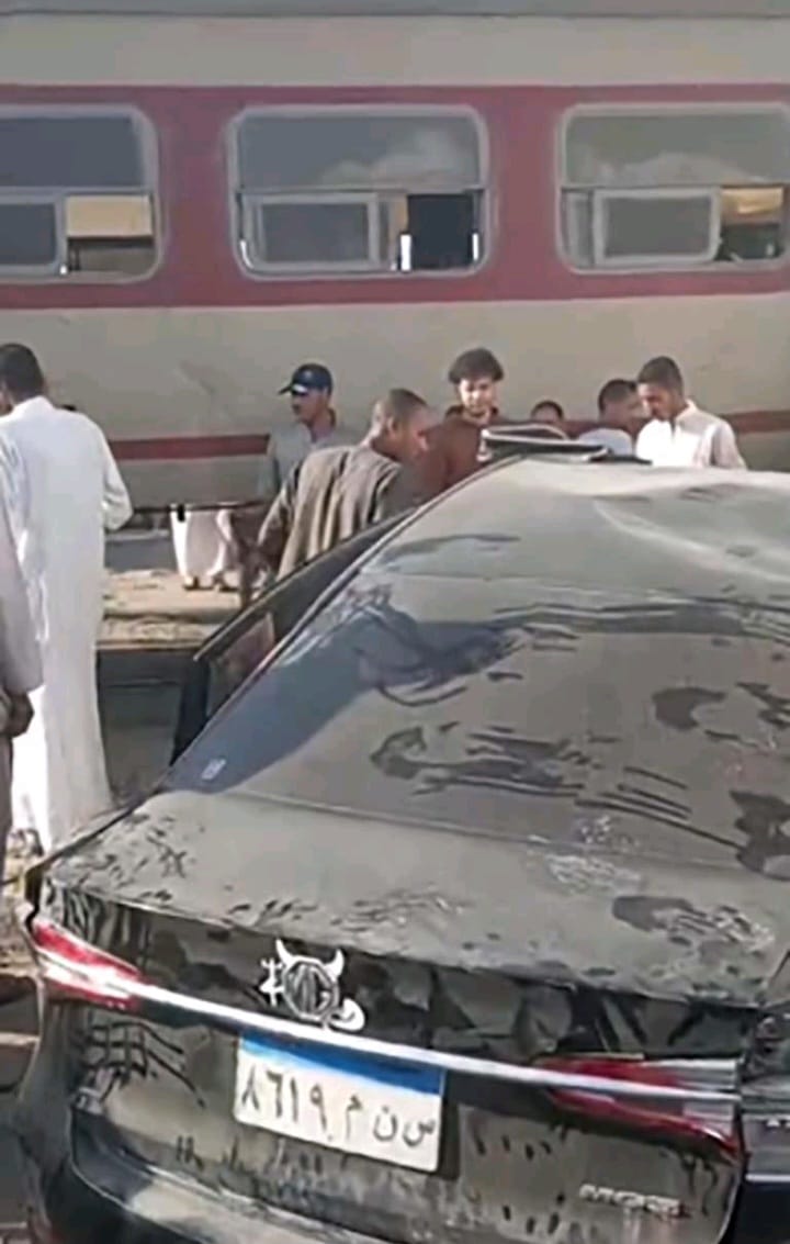 وتبين من المعاينة تصادم قطار بعدد من السيارات بينها سيارة نقل ثقيل بمقطورة رقم "ن ق د 2674" وملاكي رقم " س ن م 8619 ".
