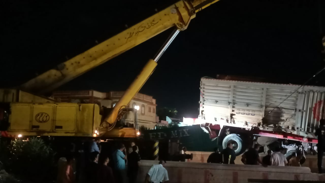 بالأوناش والمعدات الثقيلة، رفع جرار قطار برج العرب في الإسكندرية (صور)