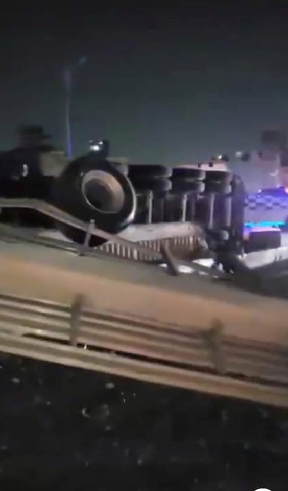 حصلت فيتو على الصور الأولى لحادث انقلاب تريلا إثر اصطدامها بلوحة نقل كانت معلقة بمفترق الطرق أمام كارفور المعادي أعلى الطريق الدائري المتجه إلى منطقة المنيب والتي تسببت في شلل مروري بالطريق.