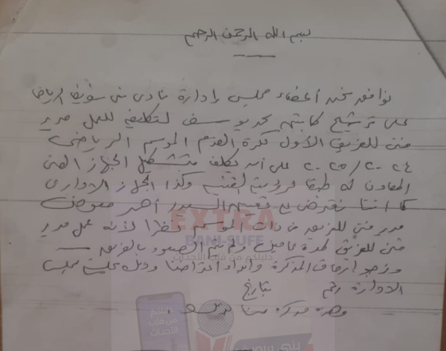 محاولات سحب الثقة من رئيس نادي بني سويف