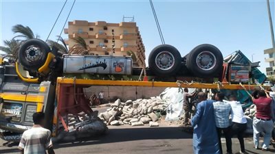 وقال شهود عيان، إن السائق تفاجأ باللوحة الإعلانية بمفترق الطرق وهو يسير بسرعة جنونية ترتب عليها انقلاب التريلا المحمل بالكونترات مما تسبب في شلل مروري.