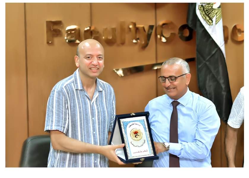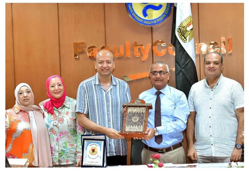 كرم الأستاذ الدكتور هاني سعيد عبد المنعم عميد كلية التربية الرياضية جامعة طنطا، المدرب الأولمبي الأستاذ الدكتور السيد سامي أستاذ المبارزة بالكلية أثناء انعقاد مجلس الكلية لشهر أغسطس.