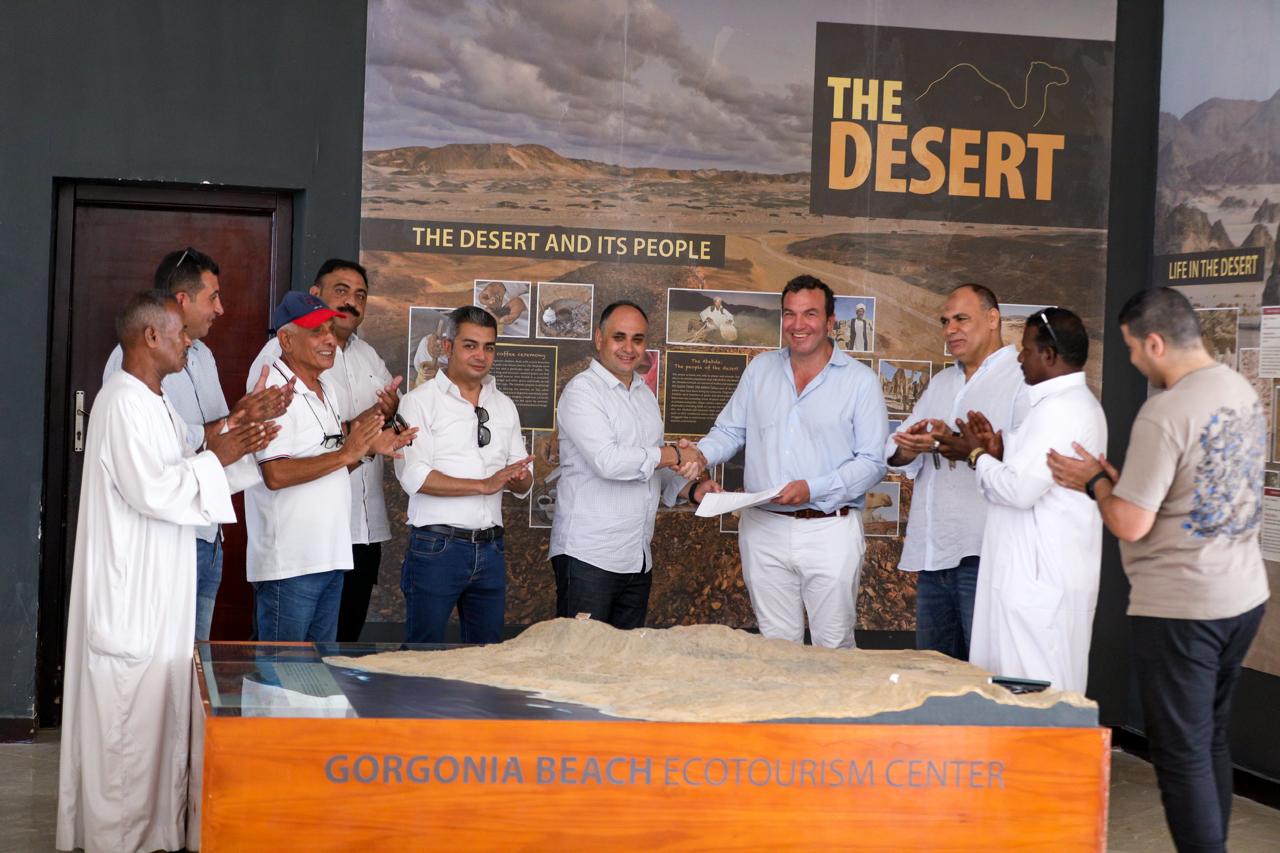 وسلم تصاريح ممارسة النشاط بمحمية وادي الجمال بمحافظة البحر الأحمر لأحد المستثمرين الإيطاليين شركة " فيرونا لاند" بالتعاون مع المجتمع المحلي ممثلا في جمعية تنمية المجتمع ابو غصون لدعم السياحة البيئية بتكلفة تقدر بحوالي مليون و٢٠٠ الف يورو وذلك بحضور المستثمرين ومحمد معتمد مساعد وزيرة البيئة للتخطيط والإستثمار البيئى وعددا من قيادات الوزارة وممثلين عن المجتمع المحلى.