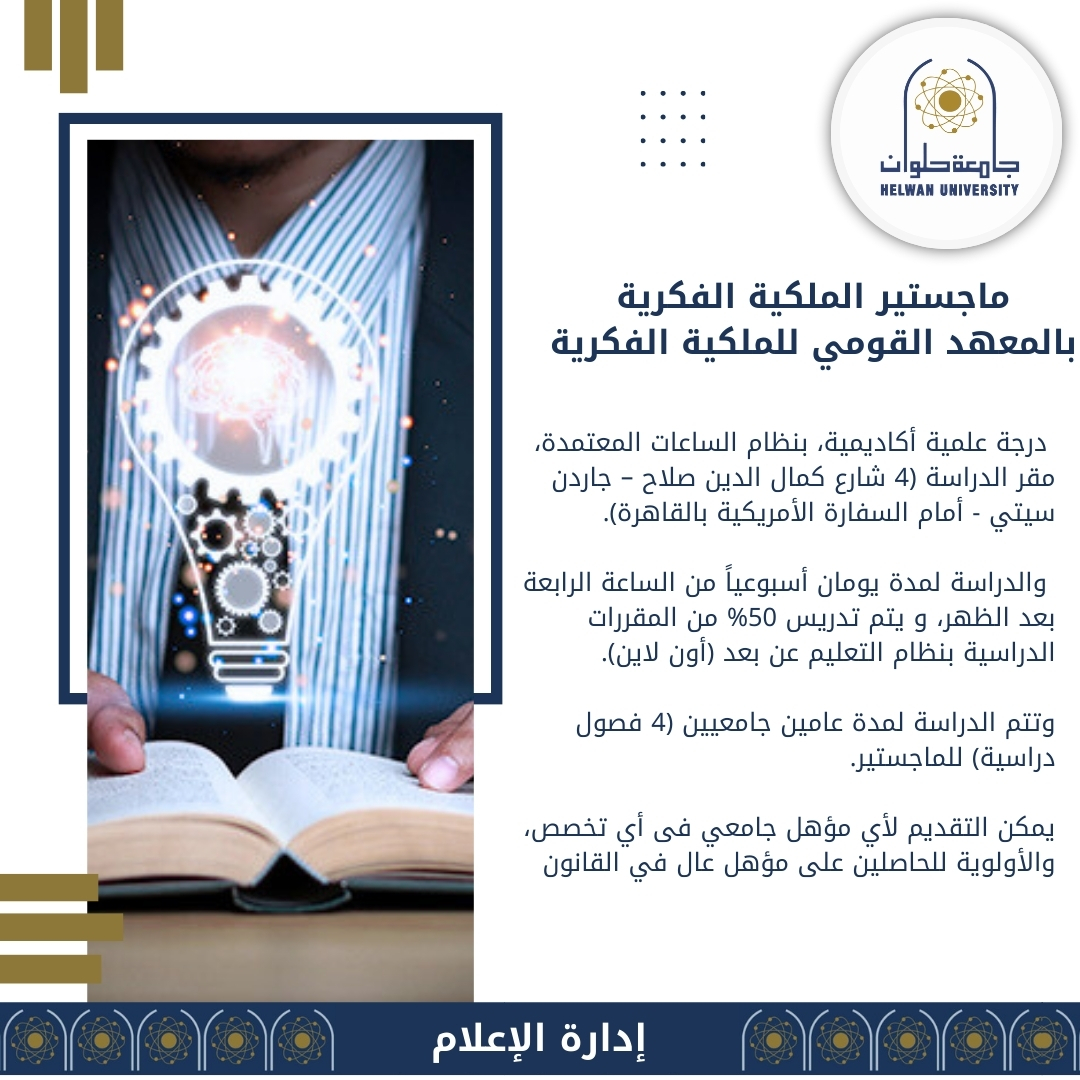 تعرف على ماجستير الملكية الفكرية بالمعهد القومي بجامعة حلوان