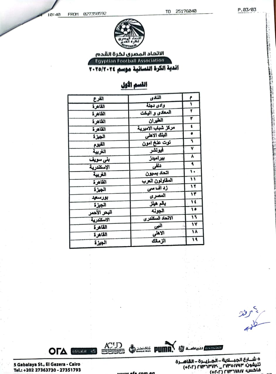 وكان اتحاد الكرة، أعلن رسميا عن أندية الكرة النسائية القسم الأول موسم 2024-2025 ويتواجد الأهلي والزمالك على رأس الفرق المشاركة في البطولة.