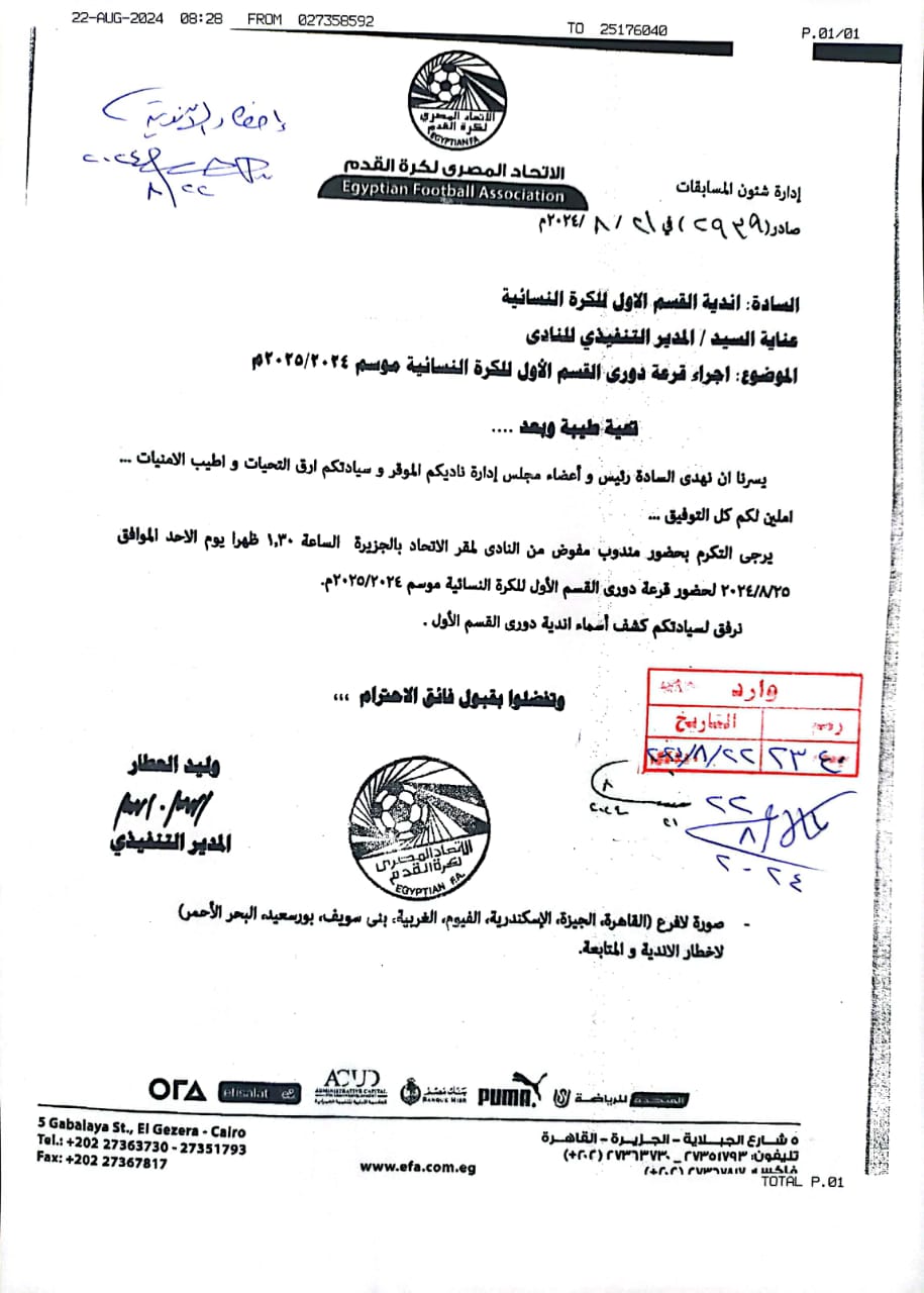 واخطر اتحاد الكرة الفروع بشروط وتعليمات القيد بمسابقات الكرة النسائية وفترة القيد الأولى والقوائم الإضافية لجميع المسابقات.