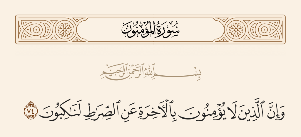 قال تعالى: «وَإِنَّ الَّذِينَ لَا يُؤْمِنُونَ بِالْآخِرَةِ عَنِ الصِّرَاطِ لَنَاكِبُونَ».