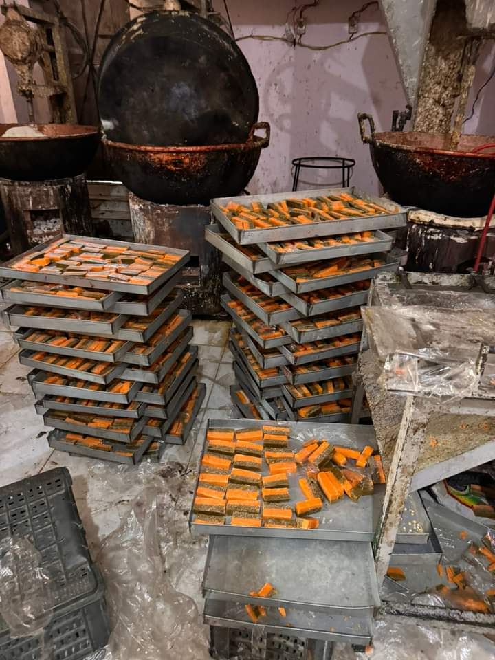 وبلغت كمية الإنتاج تام الصنع 6260 قطعة حلوى مختلفة الانواع، وتحرر المحضر اللازم وتم العرض علي النيابة المختصة، وقرر وكيل النيابة يخب عينة من المنتجات المضبوطة، لتحليلها بمعامل وزارة الصحة، وإعداد تقرير بمدي صلاحيتها للاستخدام الادمي، وطلب تحريات إدارة البحث الجنائي حول الواقعة، وتولي التحقيق.