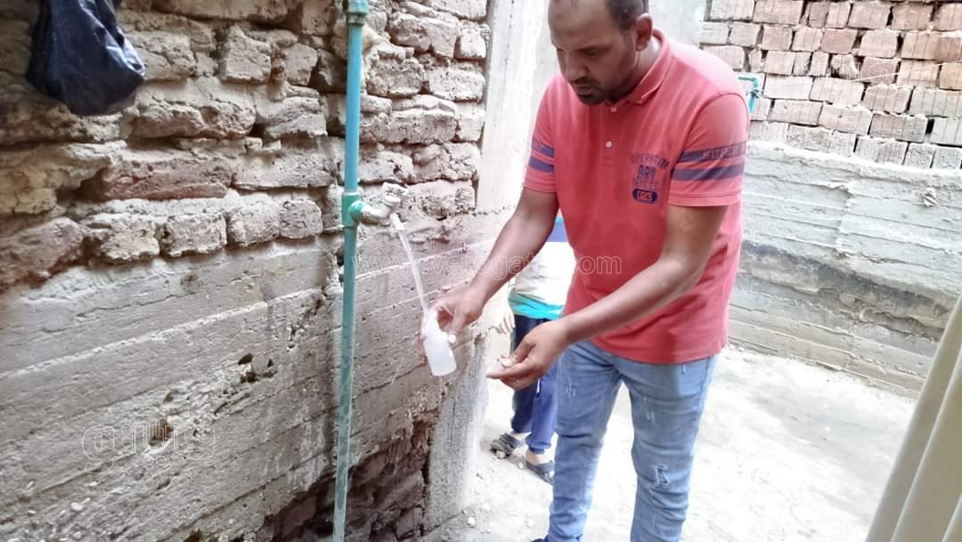 مواسير حديد مصدية، مواطن يستغيث من تغير لون مياه الشرب بمنزله بالأقصر والشركة ترد (صور)