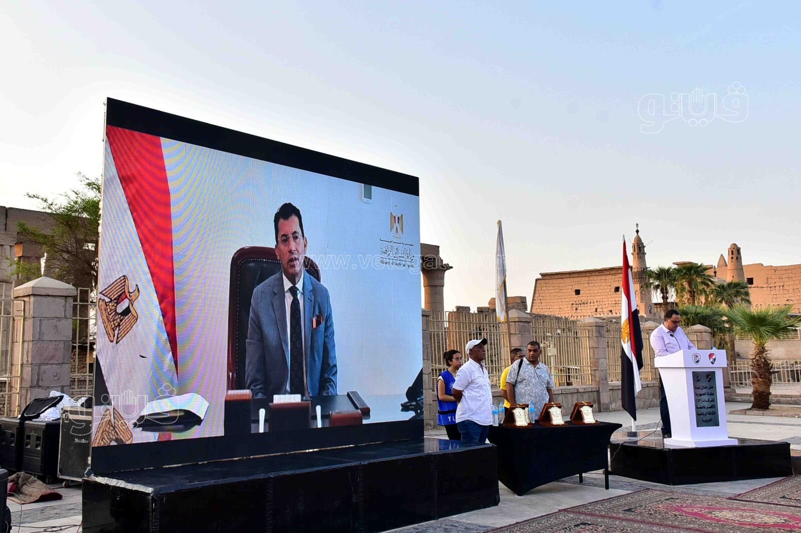 ووجه الدكتور أشرف صبحي وزير الشباب والرياضة التحية للحضور والشكر لمحافظ الأقصر على ما قدمه من دعم لإنجاح فعاليات الأقصر عاصمة الثقافة الرياضية العربية وحفل إطلاق شعلة بطولة الجمهورية للشركات.