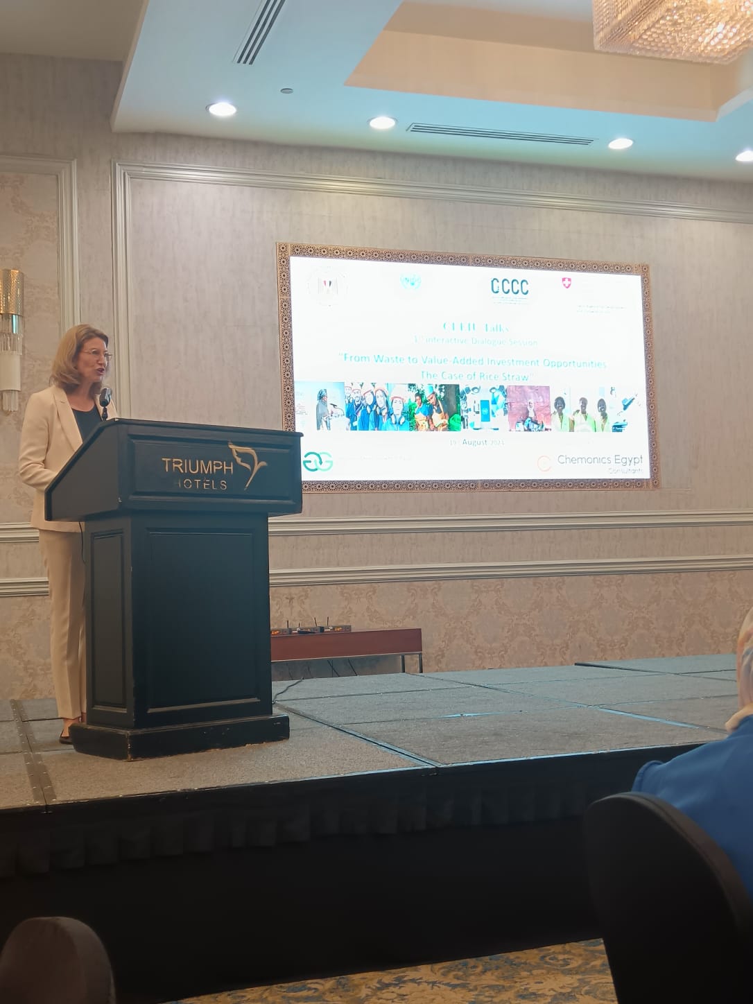 وأشارت الدكتورة فاليري ليشتى، رئيسة مكتب التعاون الدولي بسفارة سويسرا في مصر، إلى أهمية الحوار التفاعلي في عرض الفرص والتحديات وجلب المزيد من التمويلات للحد من الآثار البيئية للمخلفات الزراعية مع دعم الاستثمار، بالتعاون مع الجهات المانحة والمستثمرين، مؤكدة على اهتمام السفارة السويسرية في مصر بتسليط الضوء على جميع الأنشطة الخاصة بالاقتصاد الأخضر والطاقة الجديدة والمتجددة، كما تعمل بالشراكة مع منظمة اليونيدو على إيجاد حلول للتغلب علي التحديات البيئية في مصر، مشددة على دعم الحكومة السويسرية لمشروعات إعادة التمويل ومشروعات الاقتصاد الدوار من خلال دعم القطاعين العام والخاص بالأنشطة البيئية لإيجاد الحلول الخاصة بكفاءة الطاقة، مشيرة إلى المشاركة بمنتدى اقتصاد الأعمال الخضراء في الأقصر، والذي أقيم في شهر يونيو الماضي وما حققه من نجاج ملحوظ.