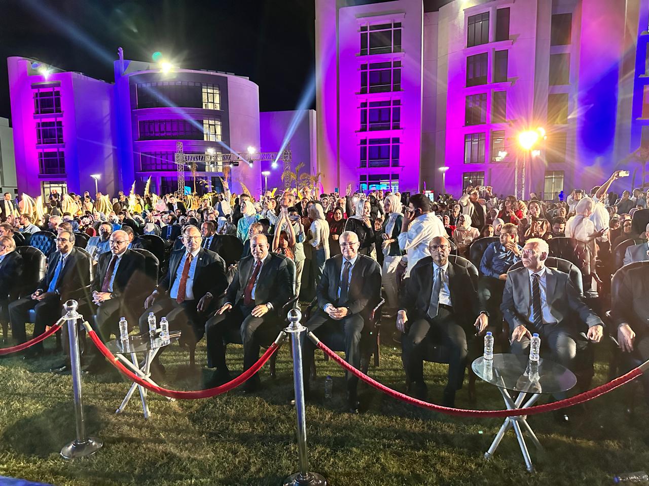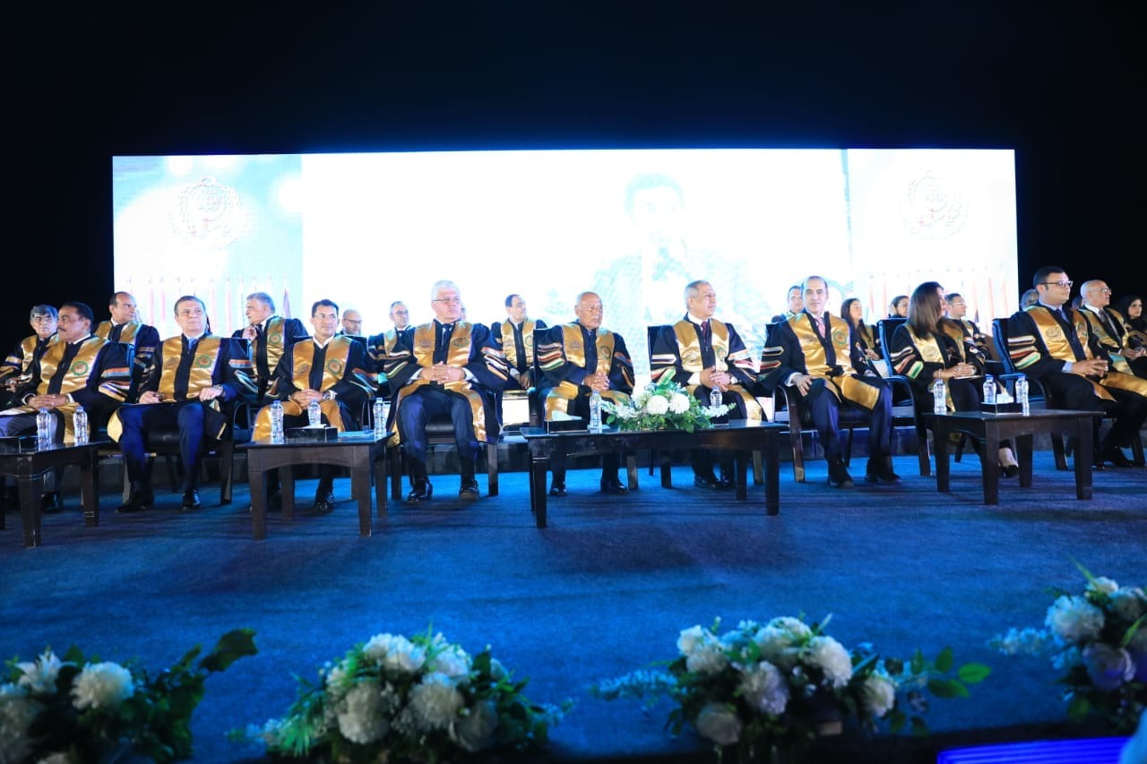 وشهد الاحتفال أحمد أبو الغيط، الأمين العام لجامعة الدول العربية، الدكتور محمد أيمن عاشور وزير التعليم العالي والبحث العلمي، نيابة عن رئيس مجلس الوزراء، الدكتور أشرف صبحي وزير الشباب والرياضة، الدكتورة منال عوض، وزيرة التنمية المحلية، المهندس شريف الشربيني، وزير الإسكان والمرافق والمجتمعات العمرانية، علاء فاروق، وزير الزراعة واستصلاح الأراضي المستشار محمود فوزي، وزير الشئون النيابية والقانونية والتواصل السياسي والدكتور إسماعيل عبد الغفار، رئيس الأكاديمية العربية للعلوم والتكنولوجيا والنقل البحري، كما شهد الحفل لفيف من المحافظون ورؤساء الجامعات والشخصيات العامة.