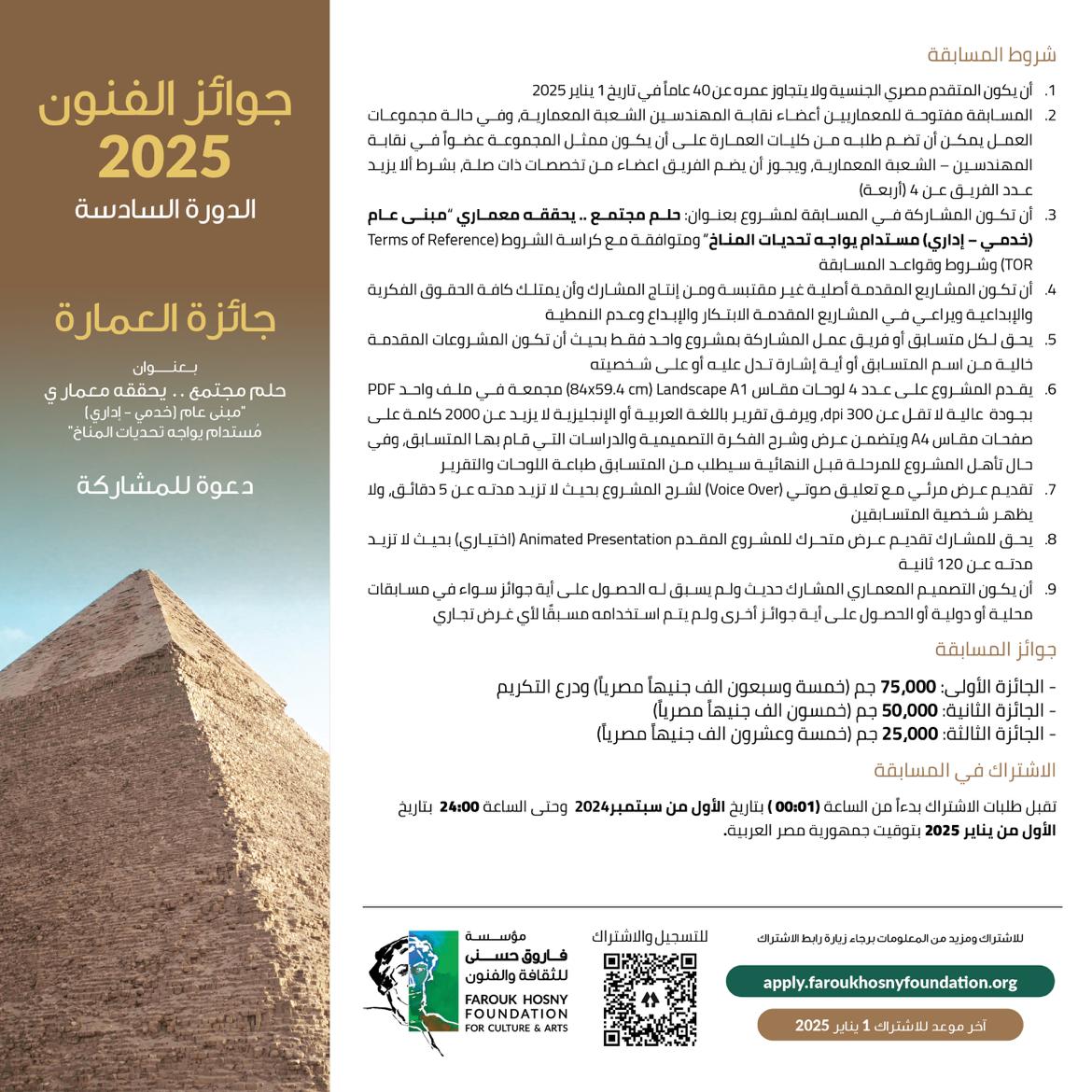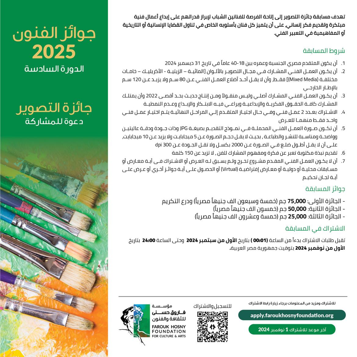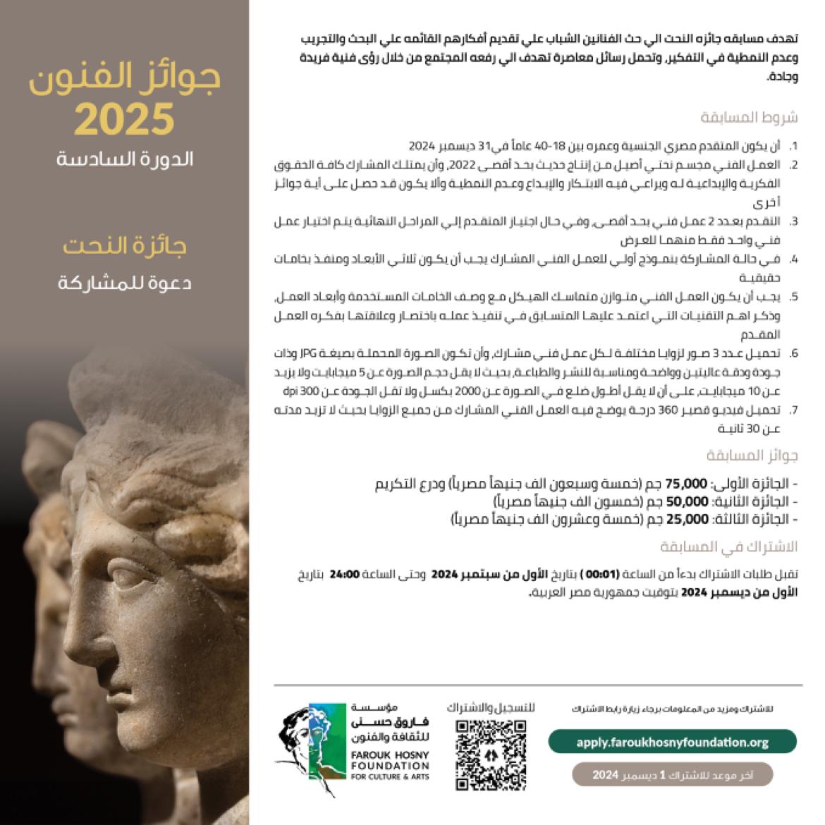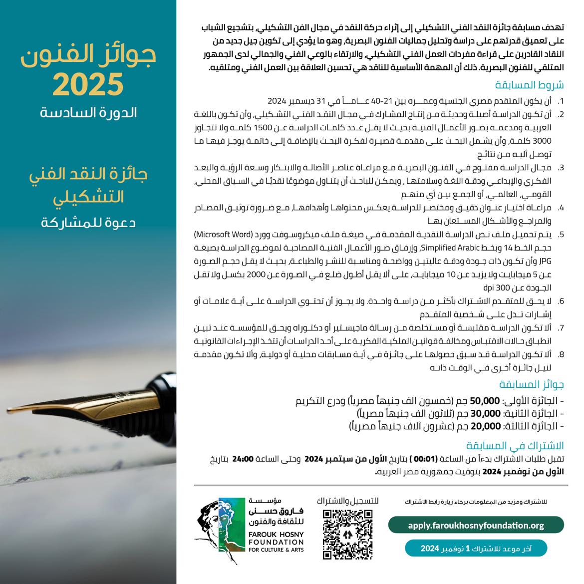 مؤسسة فاروق حسني تكشف شروط الاشتراك في جوائز الفنون لعام 2025