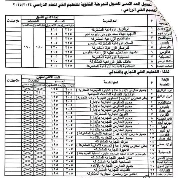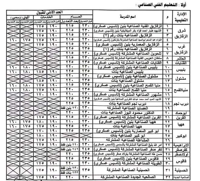 تعديل تنسيق القبول بالثانوي الفني في الشرقية (مستندات)